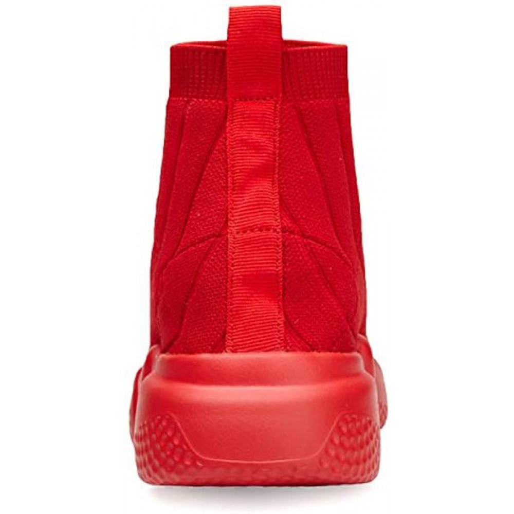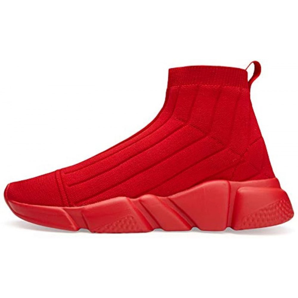 Men's Running Shoes Breathable Knit Slip On Sneakers Lightweight Athletic Shoes Casual Sports Shoes High Top All Red