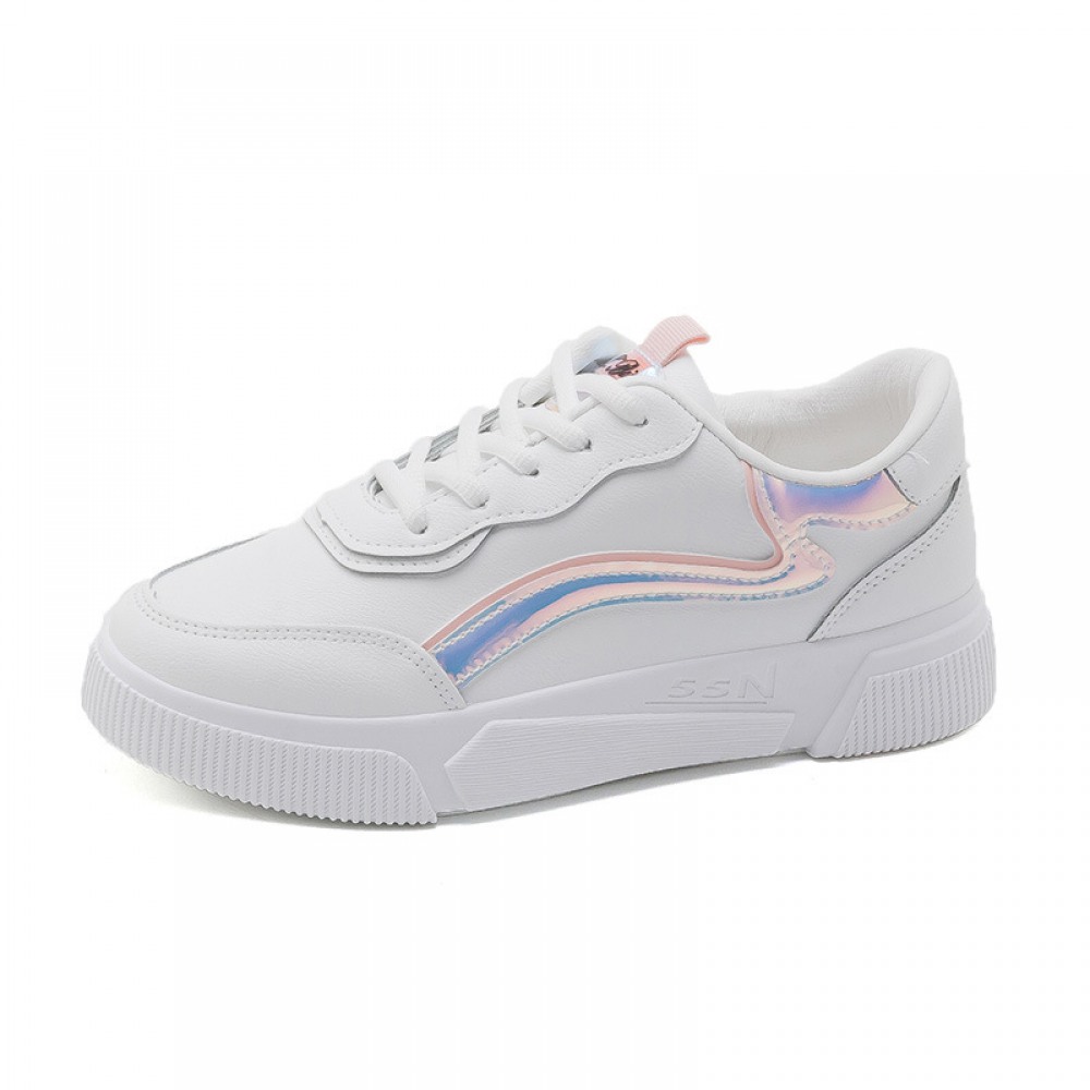 White Shoes Female Spring New Breathable Student Running Board Shoes Female Flat Lace-Up Shoes